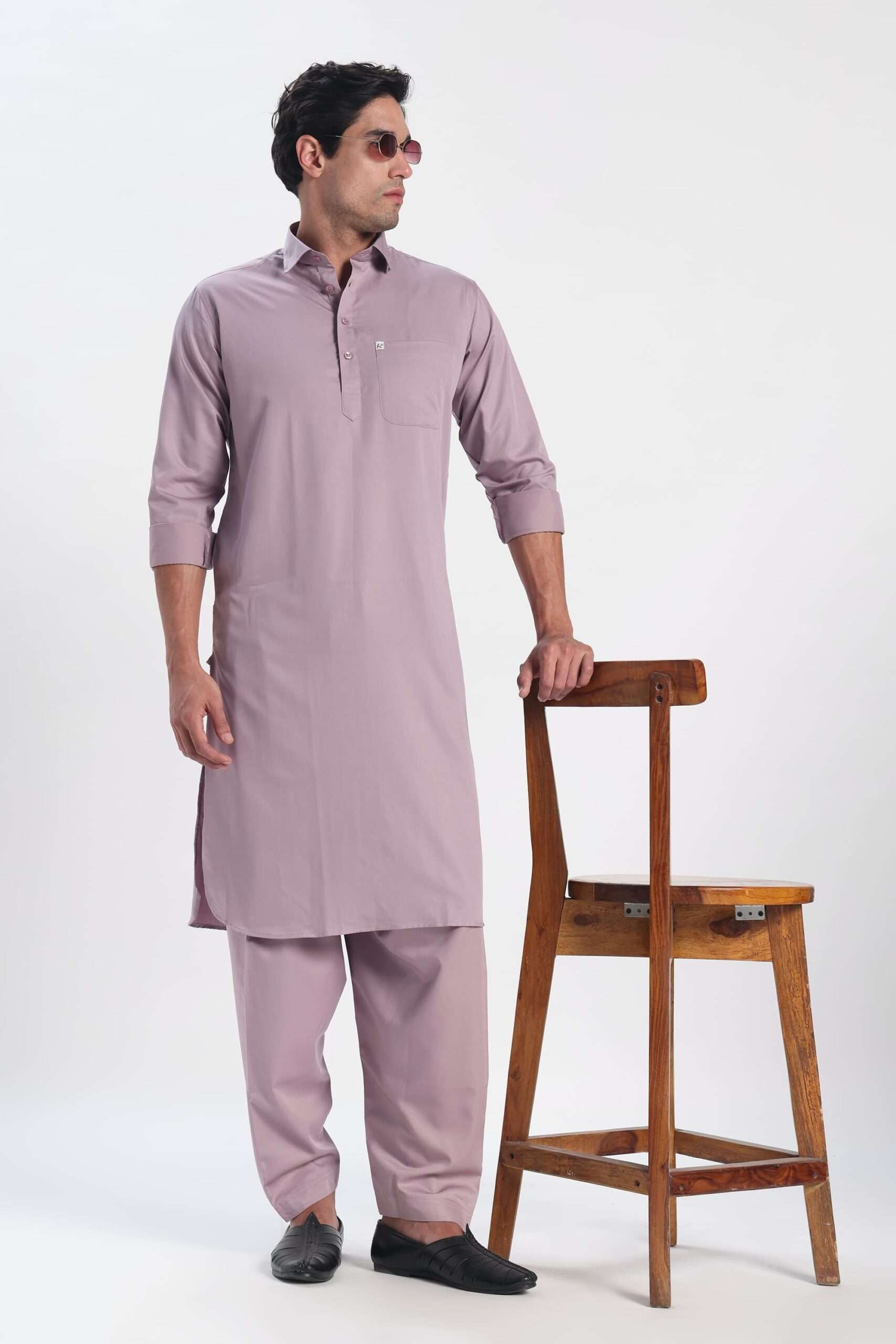 Stay cool and look sharp in our Lavender Cotton-Blend Pathani.