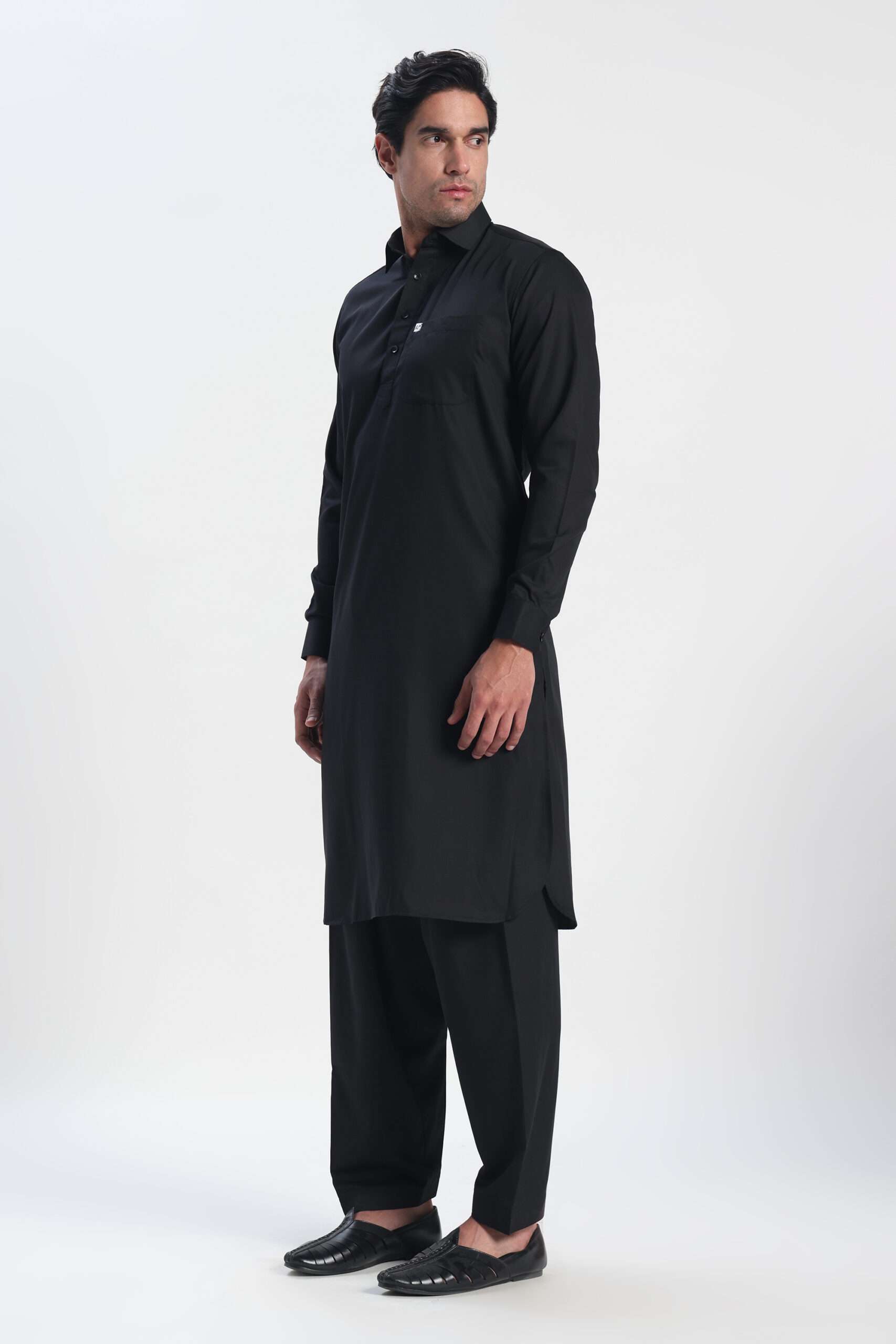 | Kameez Style | Classic Pathani Cut with Structured Shirt Collar |